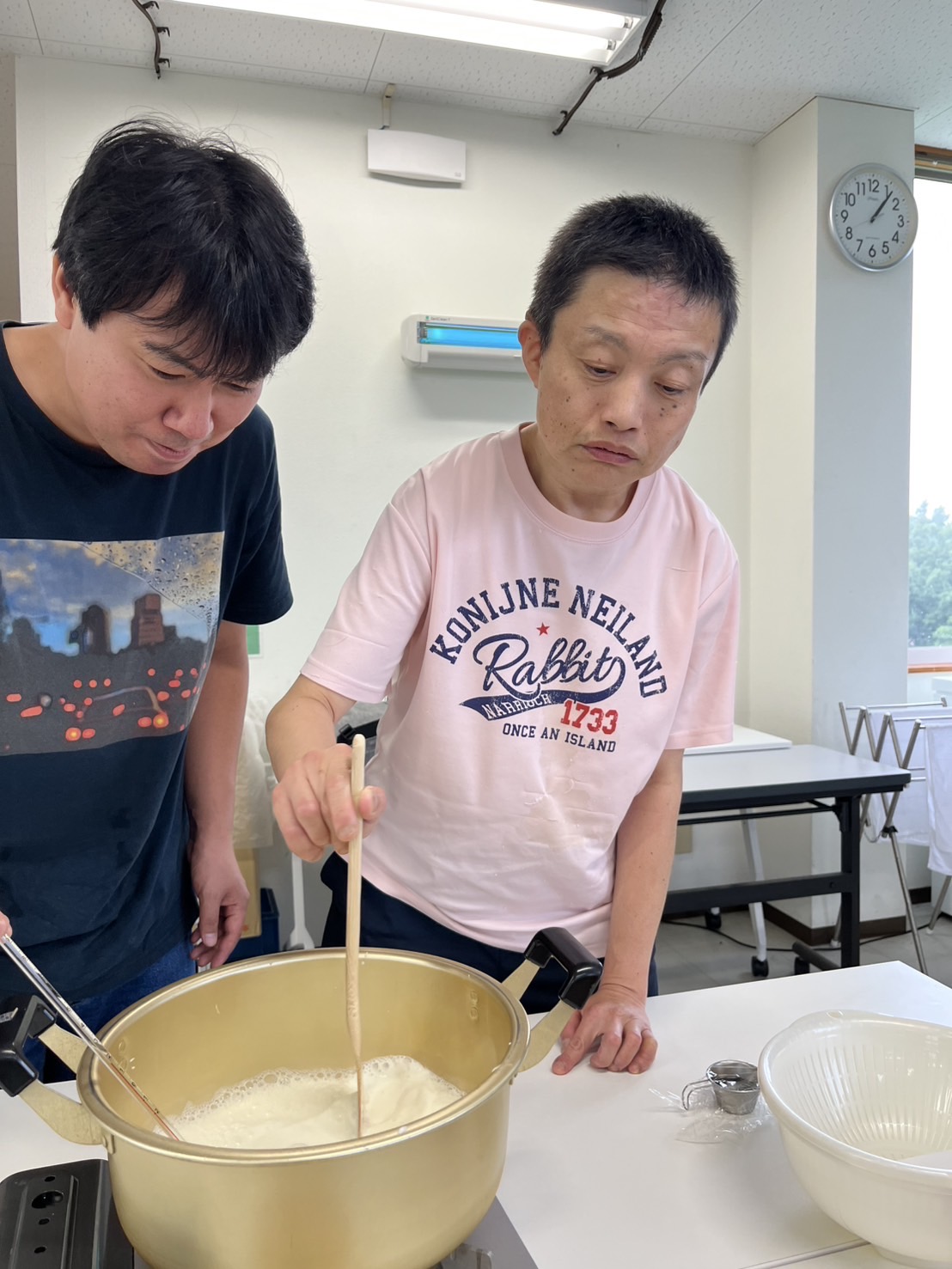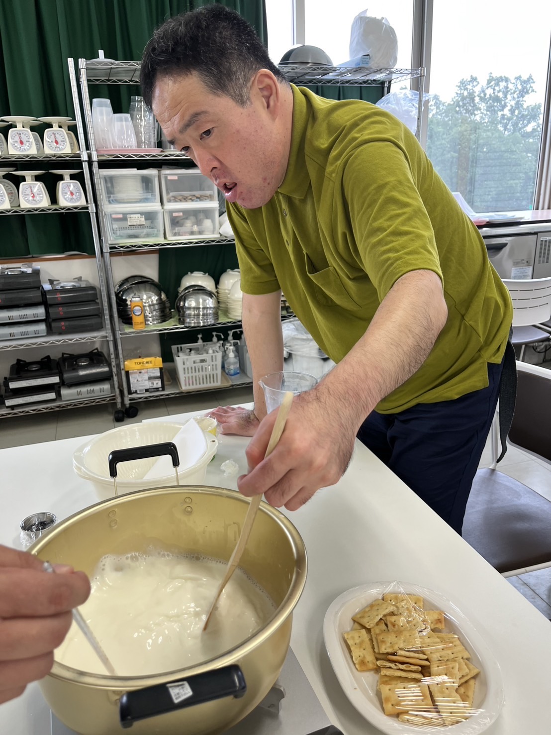 次に、『蔵王ハートランド』に行き、チーズ作り体験を行いました。係の方に作り方をレクチャーしてもらいながら、皆さん真剣なまなざしで取り組んでいました。✨